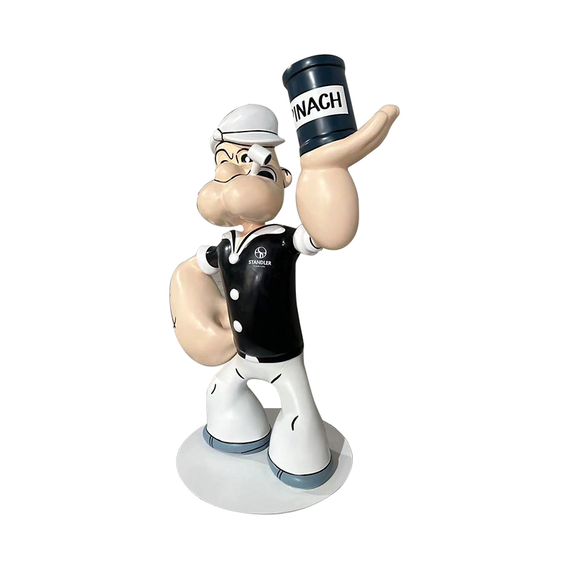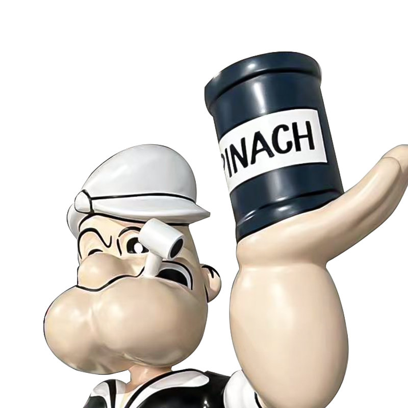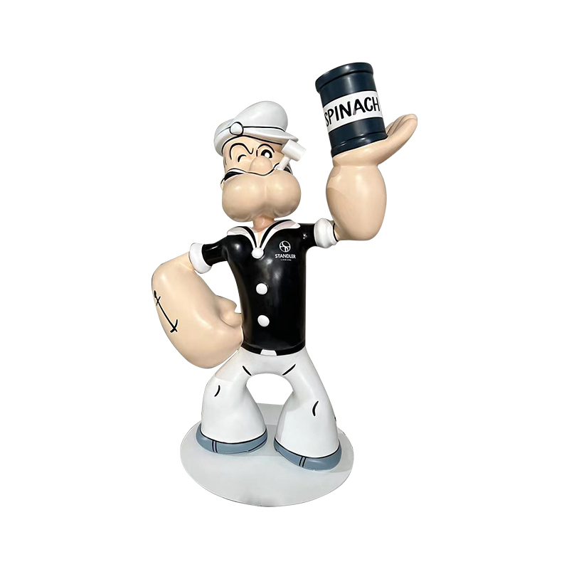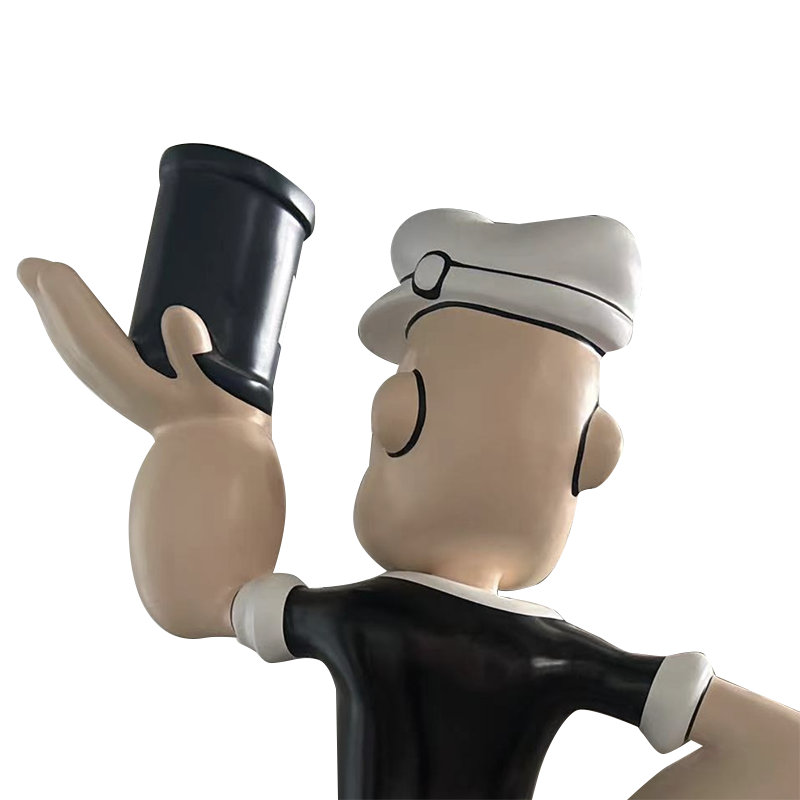Vårt företag har anpassat en tecknad Popeye -skulptur, med storlekar, färger och logotyper anpassade efter kundens storlek.